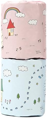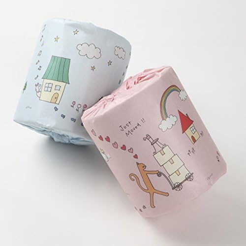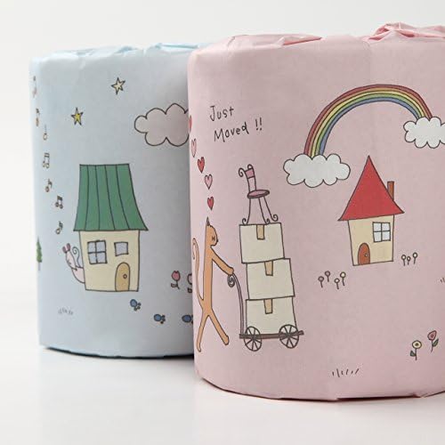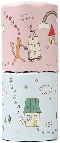 イラストは、猫ちゃんが下のロールの家から上のロールの家へ引越し中の物語風デザイン。足跡が下から上まで続いています。