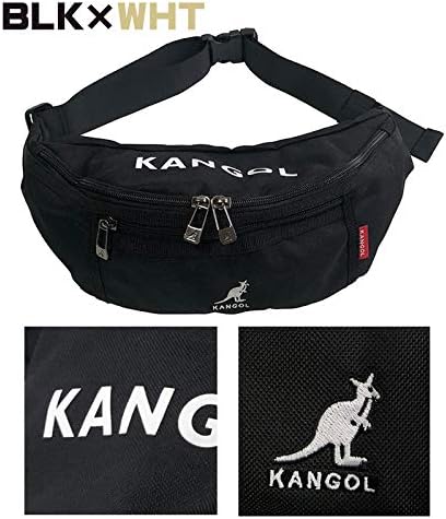 【KANGOL】カンゴール ウェストバッグ ウエストポーチ 斜めかけ 男女兼用 (BLK×WHT)
