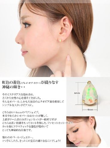 虹色の遊色(プレイ・オブ・カラー)が織りなす神秘の輝き・・そのミステリアスな煌めきは、古くから女性の心を捉えてきました。そんなオパール、しかも大注目のエチオピア産を使用してシンプルなスタッドピアスに。こちらは6×4mmのペアシェイプ。本来やわらかいオパールはカットが難しく、上部がドーム状のカボションカットが一般的ですが、こちらは高い技術をもってカットを施した、ファセットカット・タイプ。カット面にドラマティックな遊色が煌めいてとっても神秘的な印象です。憧れのオパール・ジュエリー。1つ手にしたら、きっとこの宝石の虜となることでしょう!