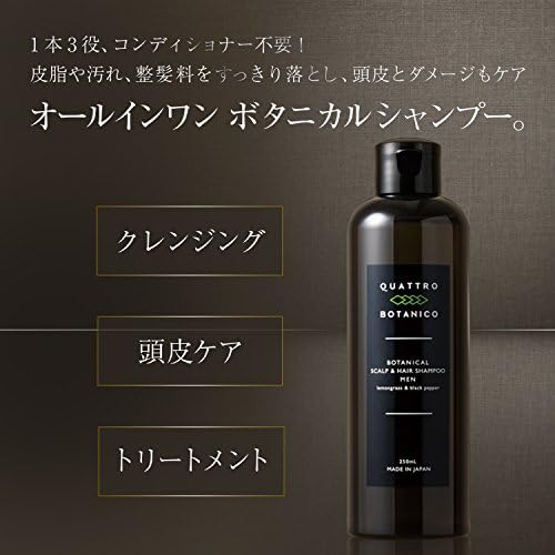 【 厳選した4種の植物エキス配合 】 4種の植物エキスが、フケ・かゆみ、におい・ベタつきの根本原因に働きかけて、乾燥や過剰な皮脂の気にならないすっきり清潔感のある頭皮コンディションに整えるメンズシャンプーです。
