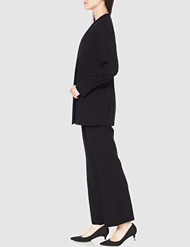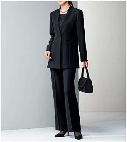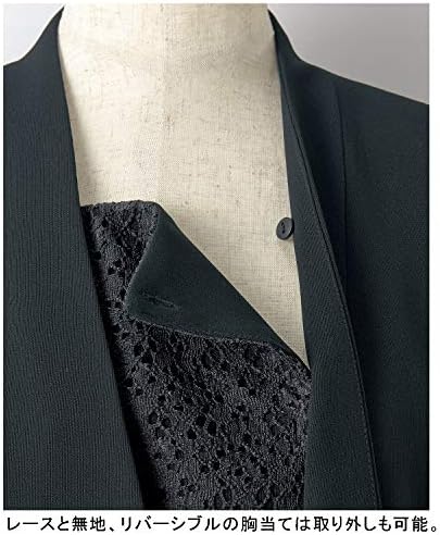インナーが不要の胸当て付きノーカラージャケットと、ほっそりと見えるセンタープレス入りパンツのセット。ジャケットは、ヒップまでカバーしてくれるロング丈。胸当ては、レースと無地のリバーシブルなので、シーンに合わせて付け替えられます。パンツのウエストはゴム仕様なのでラクラク。 はっ水性があり、シミがつきにくく汚れが落ちやすい帝人フロンティア(株)の日本製素材を使用しています。