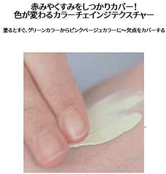肌に触れる瞬間、緑からピンクベージュカラーに代わり、肌の欠点をキレイにカバーしてくれます。