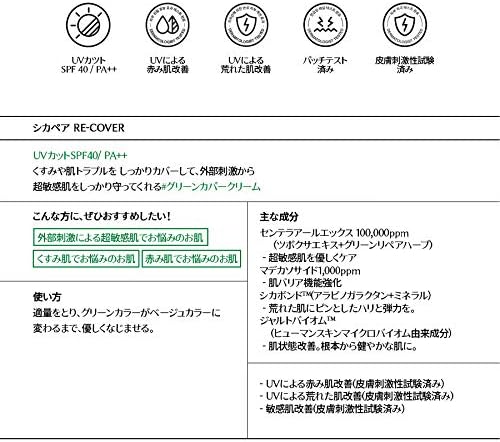 [第2世代] ドクタージャルト シカペア リカバー SPF40/PA++ 55ml (肌パッチテスト済み)朝のスキンケアの最後に適量を取り、グリーンカラーがベージュカラーに変わるまでやさしく塗り伸ばします。
