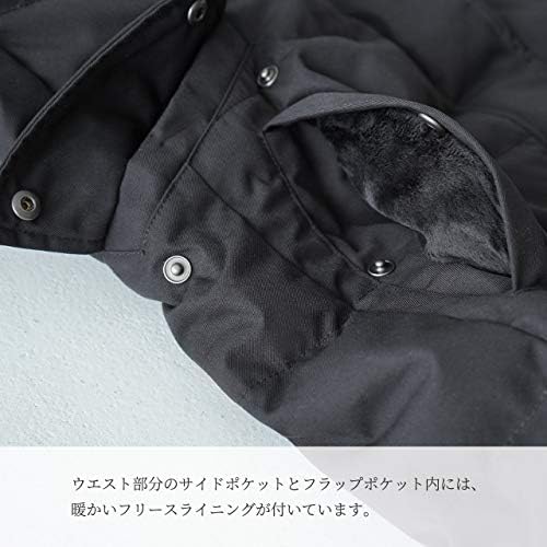 一体型のフードにはラクーンファーがあしらわれ、エレガントな印象に。ファーはジップで取り外すことができるので、オン・オフ表情を変えて楽しめます。フロントは2ウェイジッパーで開閉し、スナップボタン付きのフラップで風の侵入を防ぎます。右胸、左腰に内ポケット付き。ウエスト部分のサイドポケットとフラップポケット内には、暖かいフリースライニングが付いています。