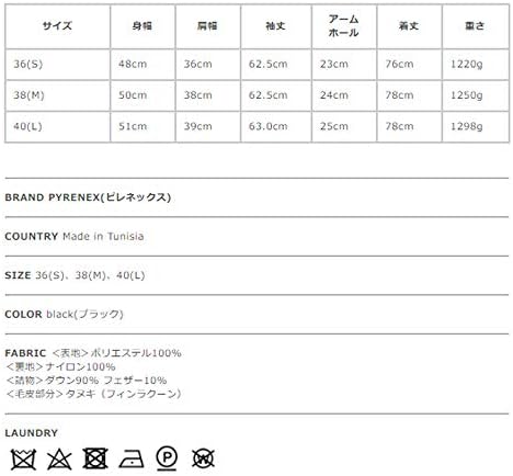 素材構成: <表地>ポリエステル100% <裏地>ナイロン100% <詰物>ダウン90% フェザー10% <毛皮部分>タヌキ(フィンラクーン)