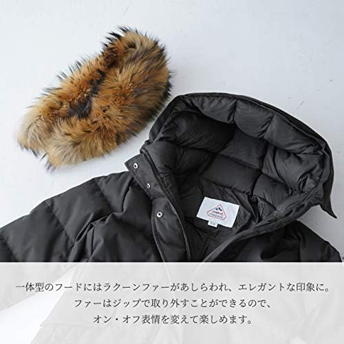 フード部は取り外し可能なフィンラクーンファーで、首周りをラグジュアリーに演出。ロングレングスでコーディネイト性に優れ、保温性能に優れながら軽い着用感です。