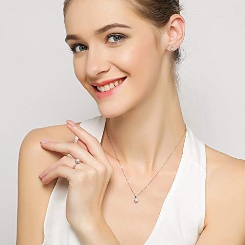 美しいロジウム・コーティングのペンダントとスタッドピアスのセット [品番:B087XBHNPC 2480より]