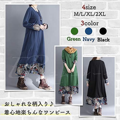 [エムエルーセ]ゆったり 長袖 ロング ワンピース 森ガール バイカラー 春 秋 冬 レディース