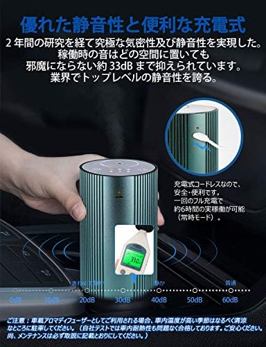 4、【優れた静音性】2年間の研究を経て、静音コンプレッサーや遮音材などを巧みに導入するすることで究極な気密性及び静音性を実現しました。稼働時の音はどの空間に置いても邪魔にならない約33dbまで抑えられていて、業界トップレベルの静音性を誇ります。車内はもちろん寝室でも快適にご利用いただけるアロマディフューザーです。