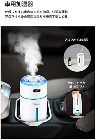(加湿器 除菌 車用加湿器)UVライトでタンクの水を除菌し、きれいなミストを噴霧する卓上加湿器。気を清浄し、静電気の発生を防止し、鼻や喉の乾燥を防ぐことができます。サイズは直径約8×高さ18.4cmで、車内のドリンクホルダーにもすっぽり入ります。車内の汚れた空気を浄化でき、道路を長時間見つめていることによる目が乾燥することも防止できます。