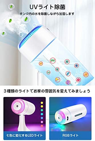 (アロマ 加湿器 超静音)超静音式でミストは熱くならず、とても静かで優しい雰囲気を醸し出します。深夜に加湿しながらノイズを消し、快適な睡眠をとることができます。3種類のライト( UVライト除菌+7色ライト+RGBライト) 柔らかい7色の暖かいLEDライトで、イルミネーションで順番に切り替わり、一日中の不快感やストレスを解消します。また、水の中にお好みのアロマ(水溶性のみ)を数滴入れることで、やさしく加湿しながら、ふんわり心地よい香りとやわらかい光で穏やかなリラックス空間を作り出し、疲れた体が自然と癒されます。