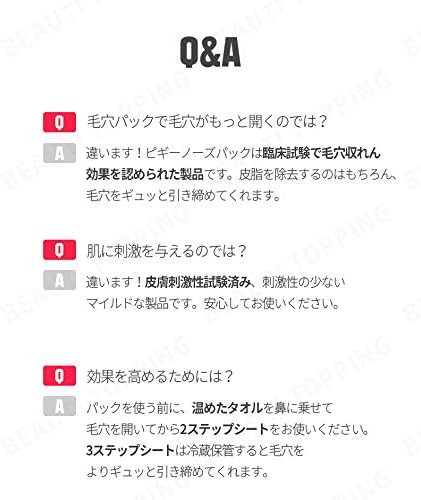 パックを使う前に、温めたタオルを鼻に乗せて 毛穴を開いてから2ステップシートをお使いください。 3ステップシートは冷蔵保管すると毛穴を よりギュッと引き締めてくれます。