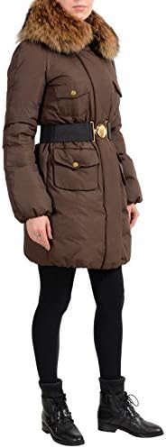 Moncler レディース ブラウンダウンファートリムフード付きパーカージャケット