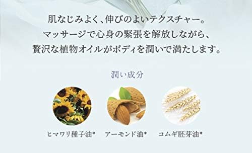 ヒマワリ油、アーモンド油、コムギ胚芽油、ゼラニウム油、マージョラム油、ラベンダー油