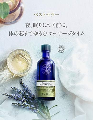 「ニールズヤード アロマティックマッサージオイル 100ml」は、植物ベースのオイルに、エッセンシャルオイルを加えたアロマトリートメントのためのマッサージオイルです。軽くなめらかな使い心地で、フェイス用としてもボディ用としても、お使いいただけます。ラベンダー、マジョラム、ゼラニウムなどをブレンドされたハーバル調の香り。男性にもおすすめのやさしくい香りで全身を包み込みます。英国土壌協会認定オーガニック製品。