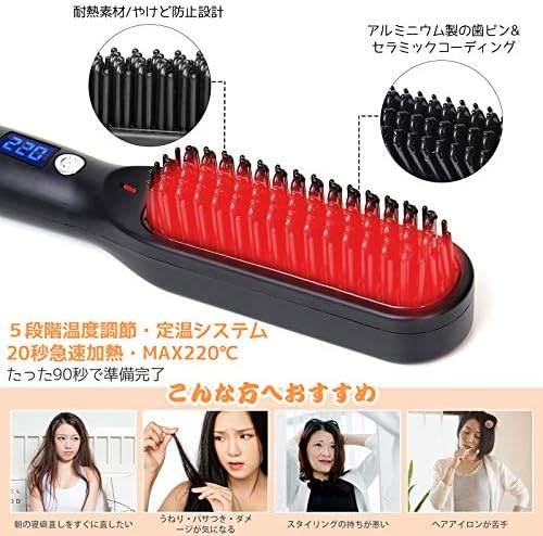 「5段階の温度設定でさまざまな髪の毛のタイプでも適用」120℃から220℃まで、髪の毛の質に合わせて調節可能。軟毛・細毛・ダメージ毛・硬毛・太毛・くせ毛まで幅広く対応可能。デジタル表示は青文字で、温度確認がしやすくなっています。