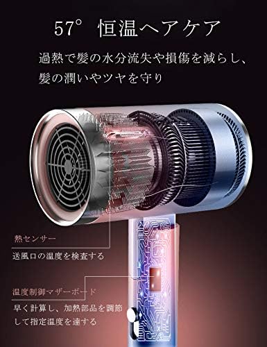 【3段階複合温度制御】:冷風、温風、熱風の3段階風速あり、髪の状態に応じて切り替えられます。