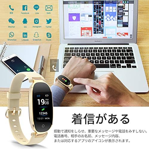 着信通知ブレスレット:0.96インチのスクリーン搭載で超薄型のスマートウォッチです。着信、SMS、Facebook、Twitter、Line、SKYPE、WhatsAppの振動通知。電話番号、お名前、または対応するSNSのアイコンが表示されます。運動中でも大切なメッセージが見逃しません。また、会議中や電車を乗る時に、電話を受けることが不便である場合、3秒を長押しすると、拒否することができます。静かに作動するので、周りの人に邪魔になりません。スクリーンの明るさは5段階に分けられます。周囲の明るさに応じて、スマートウォッチのスクリーンの明るさを調節し、電池を節約する目的に達成されます。