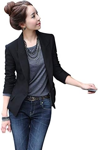 (Excellent Details) Padded shoulders for a neat and clean style that fits in the office. Finding your shoulder lines can also make your face smaller, and your arms look slimmer. The stylish one-button design is made of self-fabric walnut buttons for an elegant look. This is an excellent jacket that will complete your look with just one piece. With an emphasis on style and design, the pockets are faux The faux design maintains a beautiful silhouette and disperses the eyes around the stomach and adds a business-like impression.